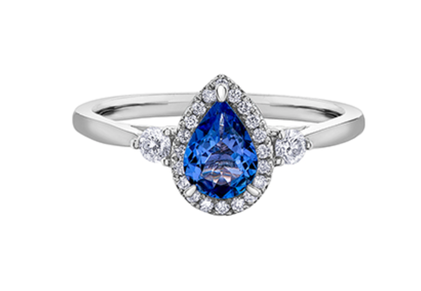 14k White Gold Pear Shape Sapphire & Canadian Diamond Ring, size 6.5