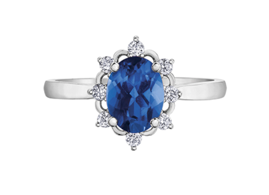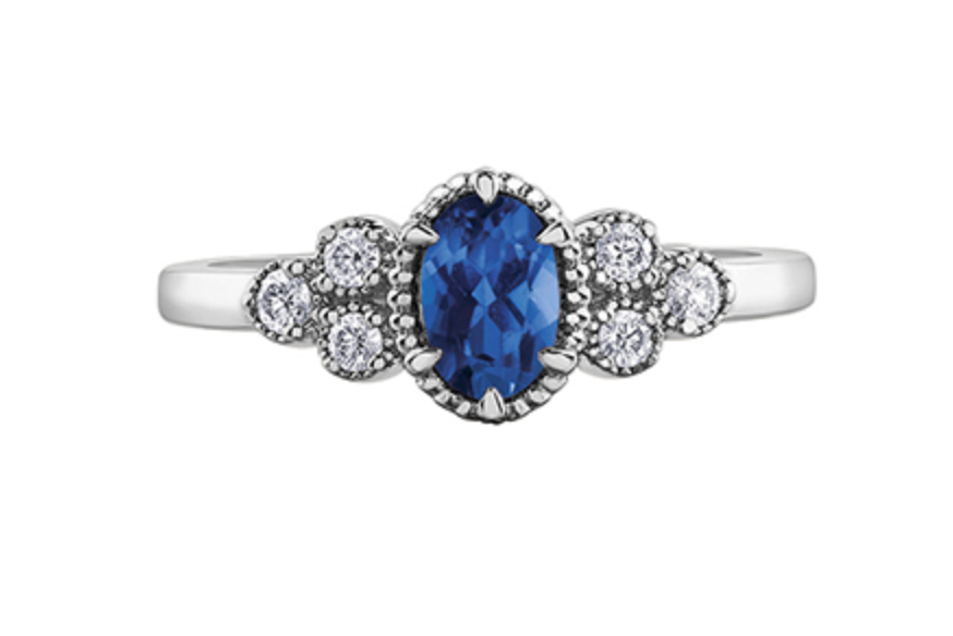 14k White Gold Oval Blue Sapphire & 0.16cttw Canadian Diamond Ring, size 6.5