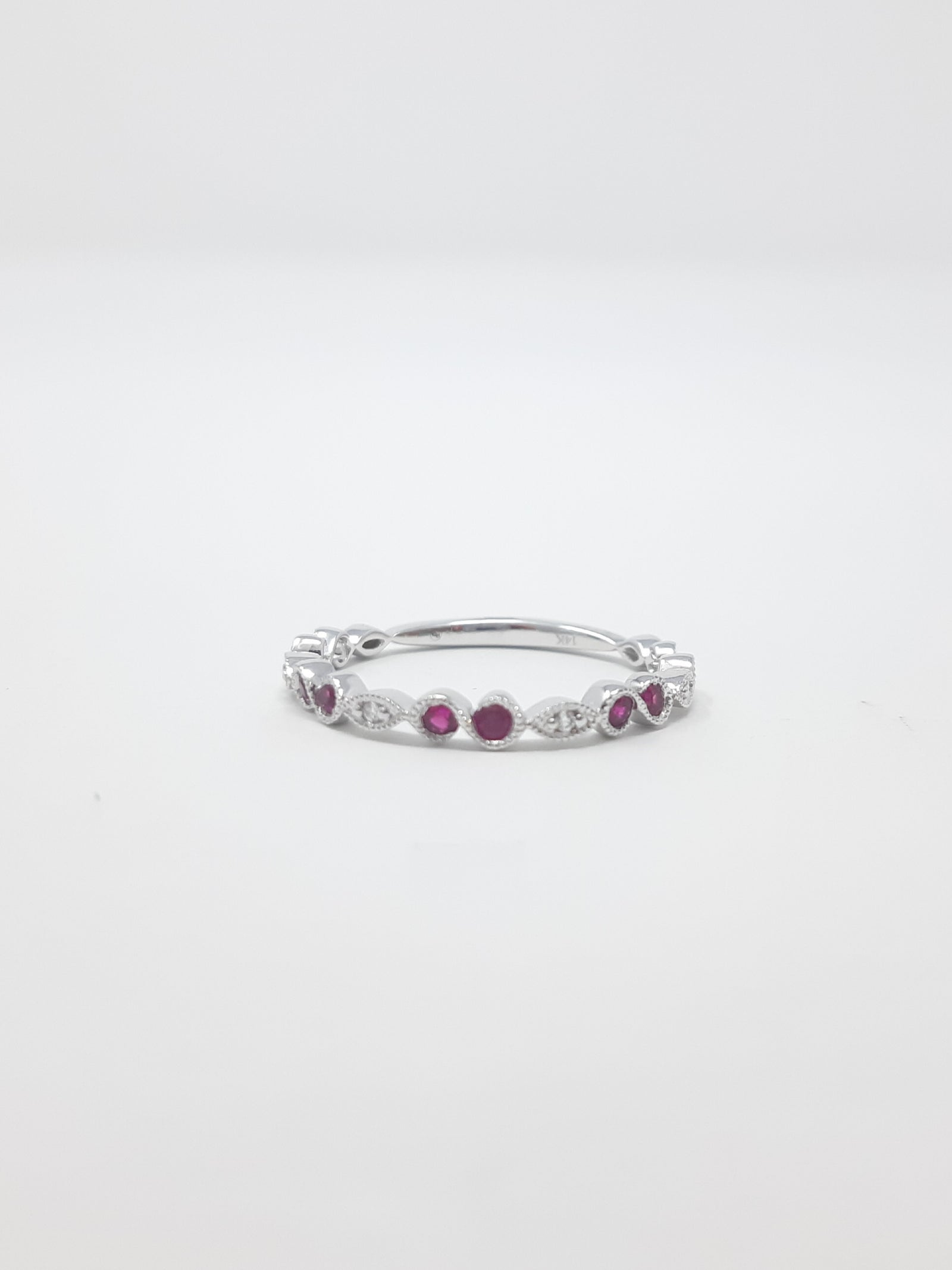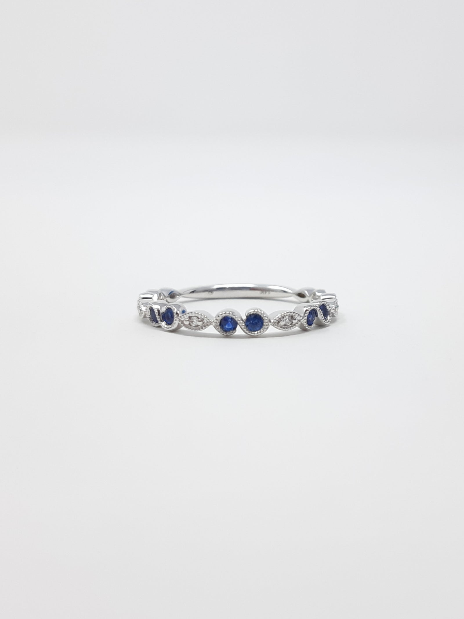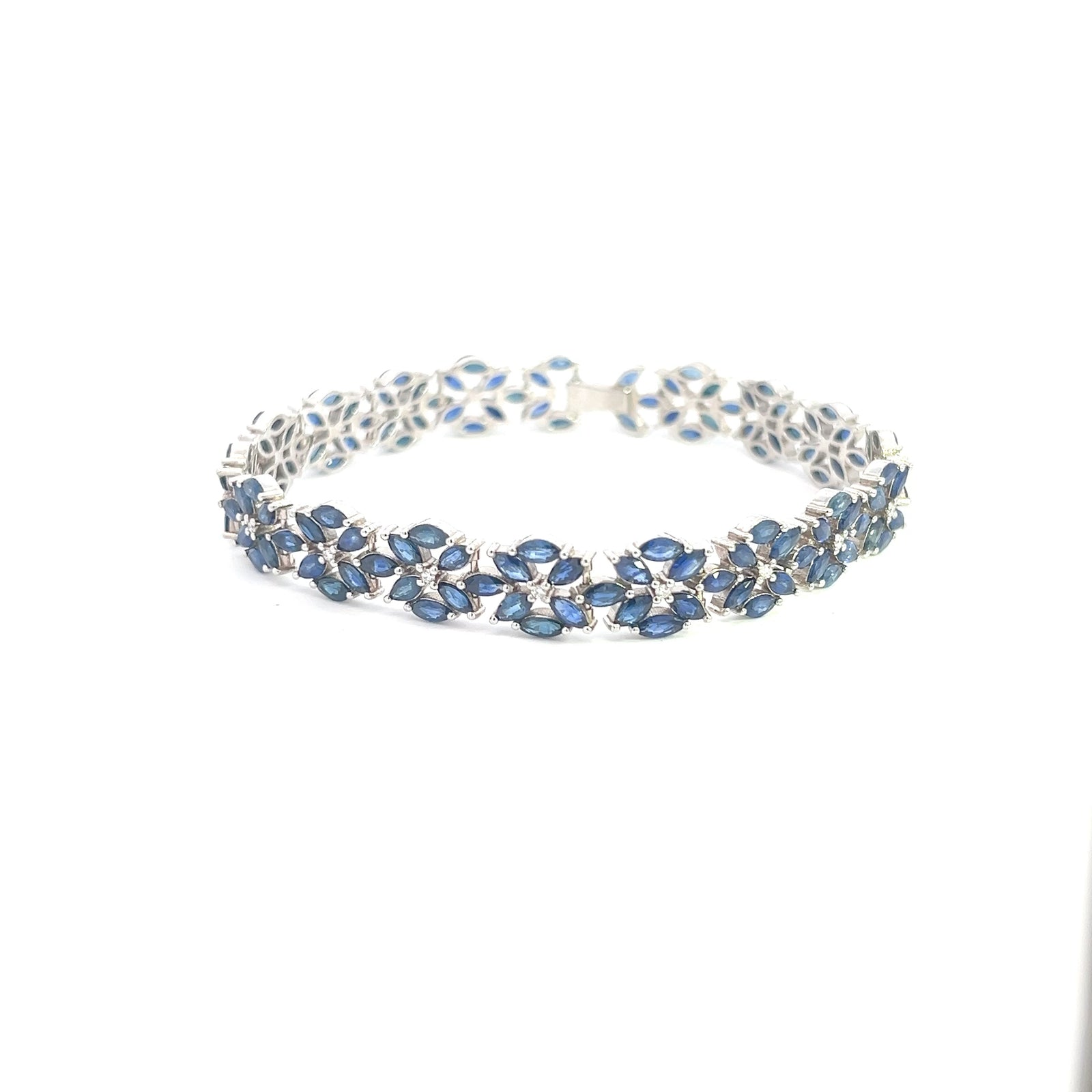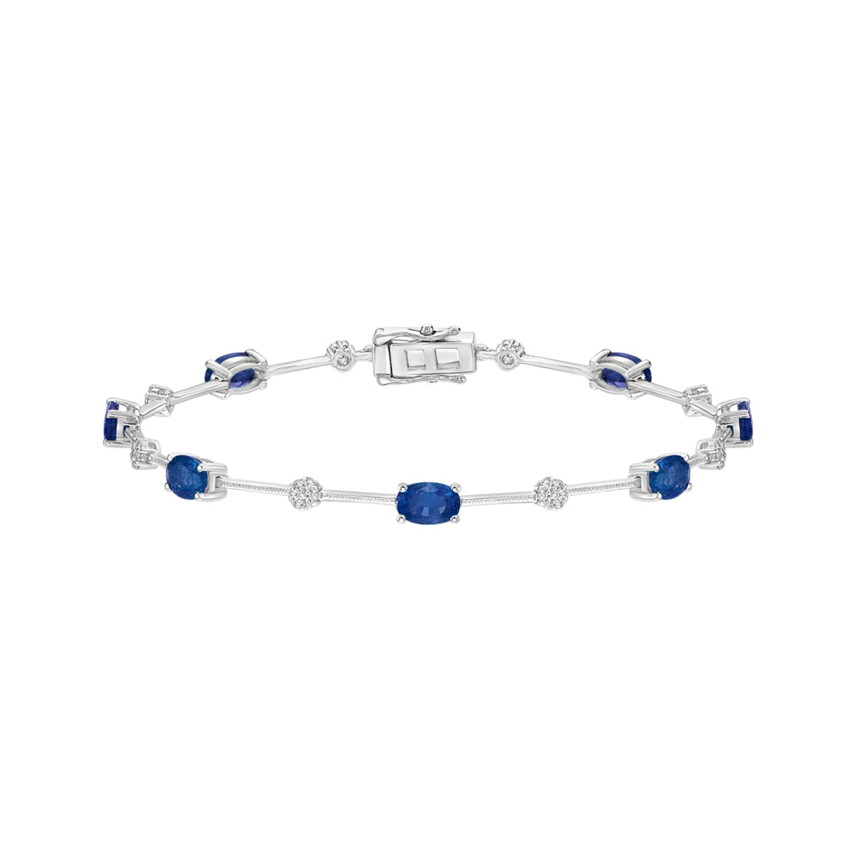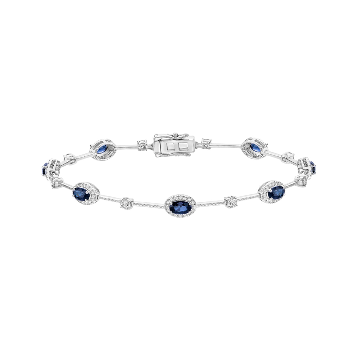 14K White Gold Sapphire and Diamond Bracelet - 7"