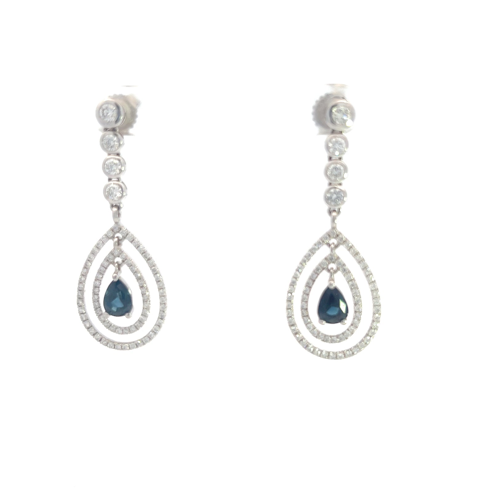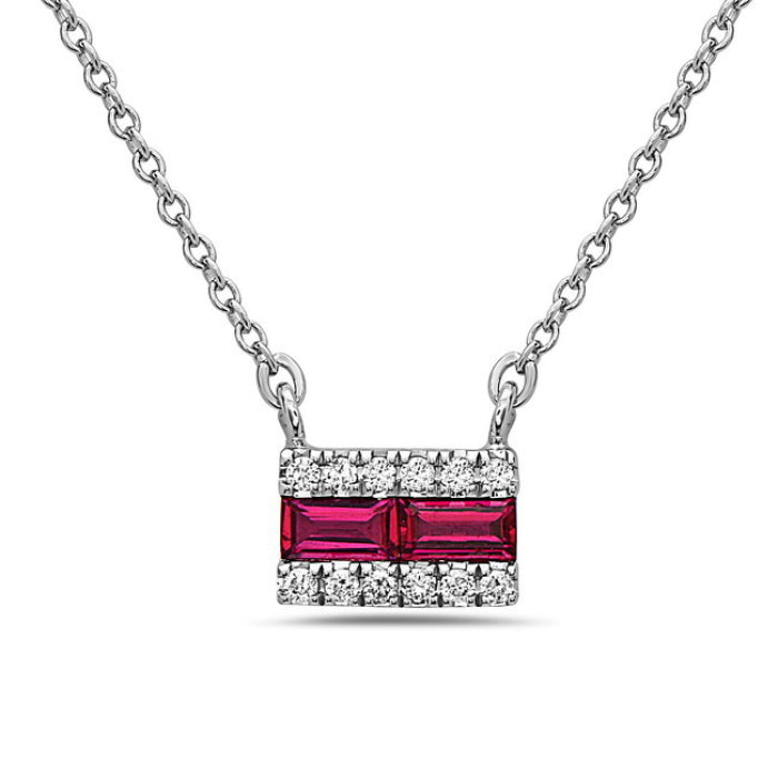 14K White Gold Sapphire and Diamond Necklace, 18"