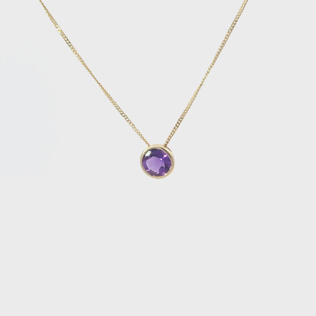 10K Yellow Gold 5mm Genuine Amethyst Pendant