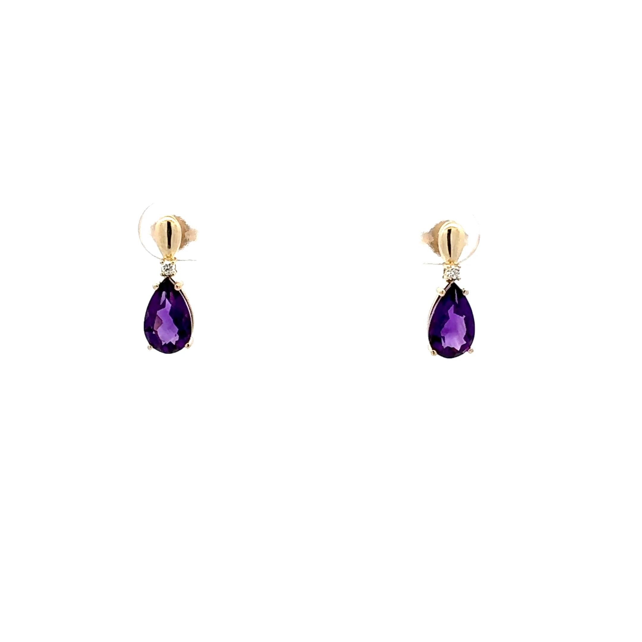 10K Yellow Gold Amethyst and Canadian Diamond Earrings