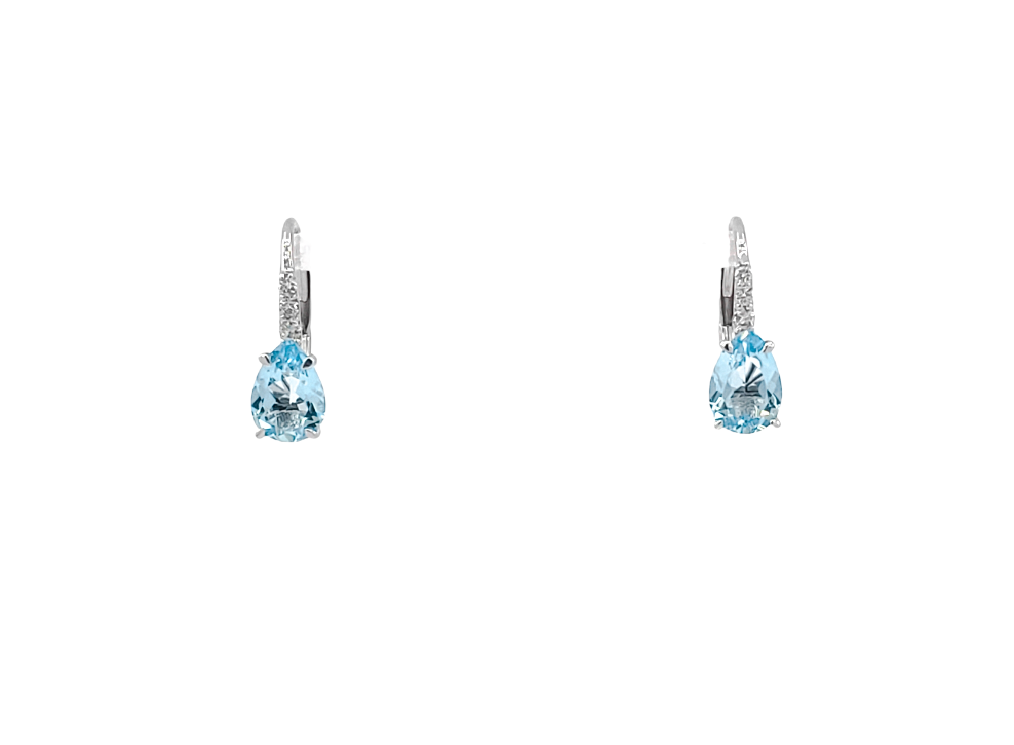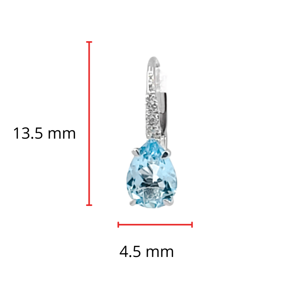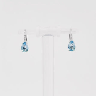 10K White Gold 7x5mm Pear Cut Swiss Blue Topaz and 0.065cttw Diamond Dangle Earrings