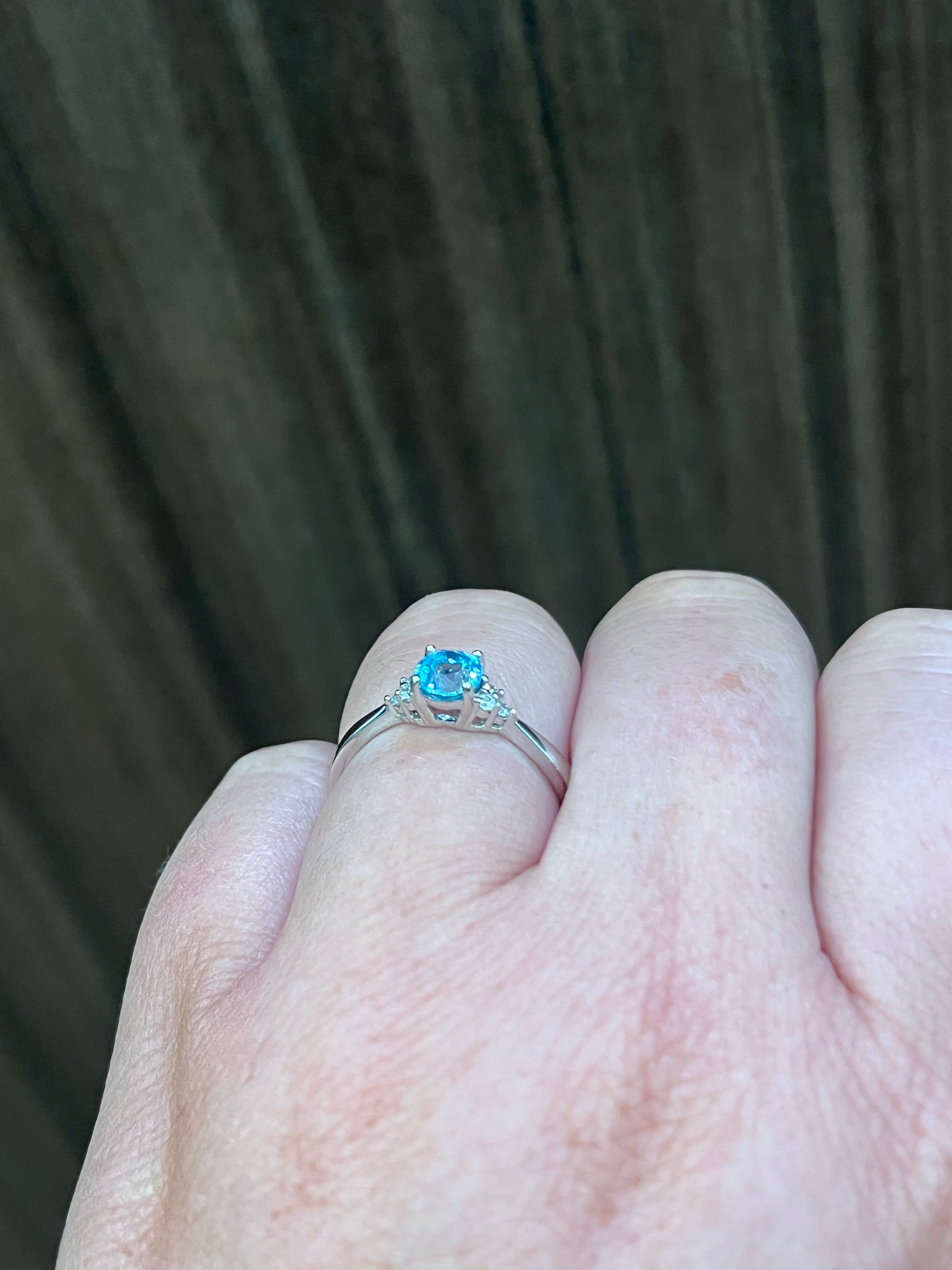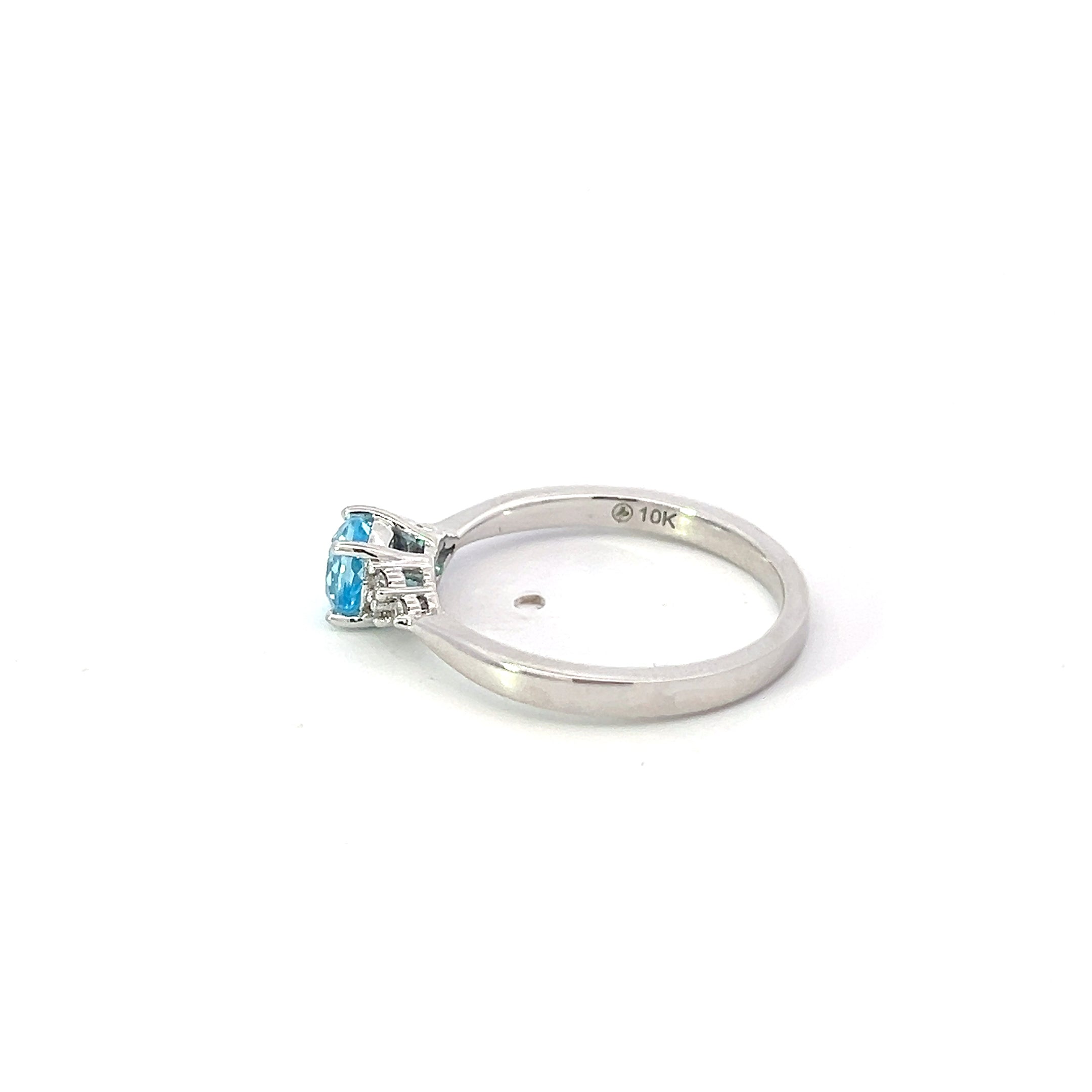 10K White Gold Blue Topaz and 0.06cttw Diamond Ring - Size 6