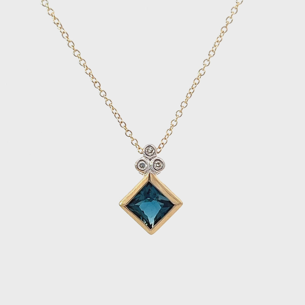 • 10K Yellow Gold London Blue Topaz and Diamond Necklace