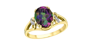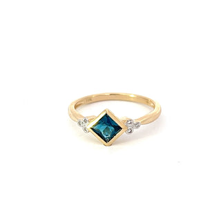 10K Yellow Gold London Blue Topaz and Diamond Ring, size 7