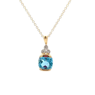 10K Yellow Gold Swiss Blue Topaz and Diamond Pendant, 18"