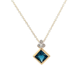 10K Yellow Gold London Blue Topaz and Diamond Necklace - 18 Inches
