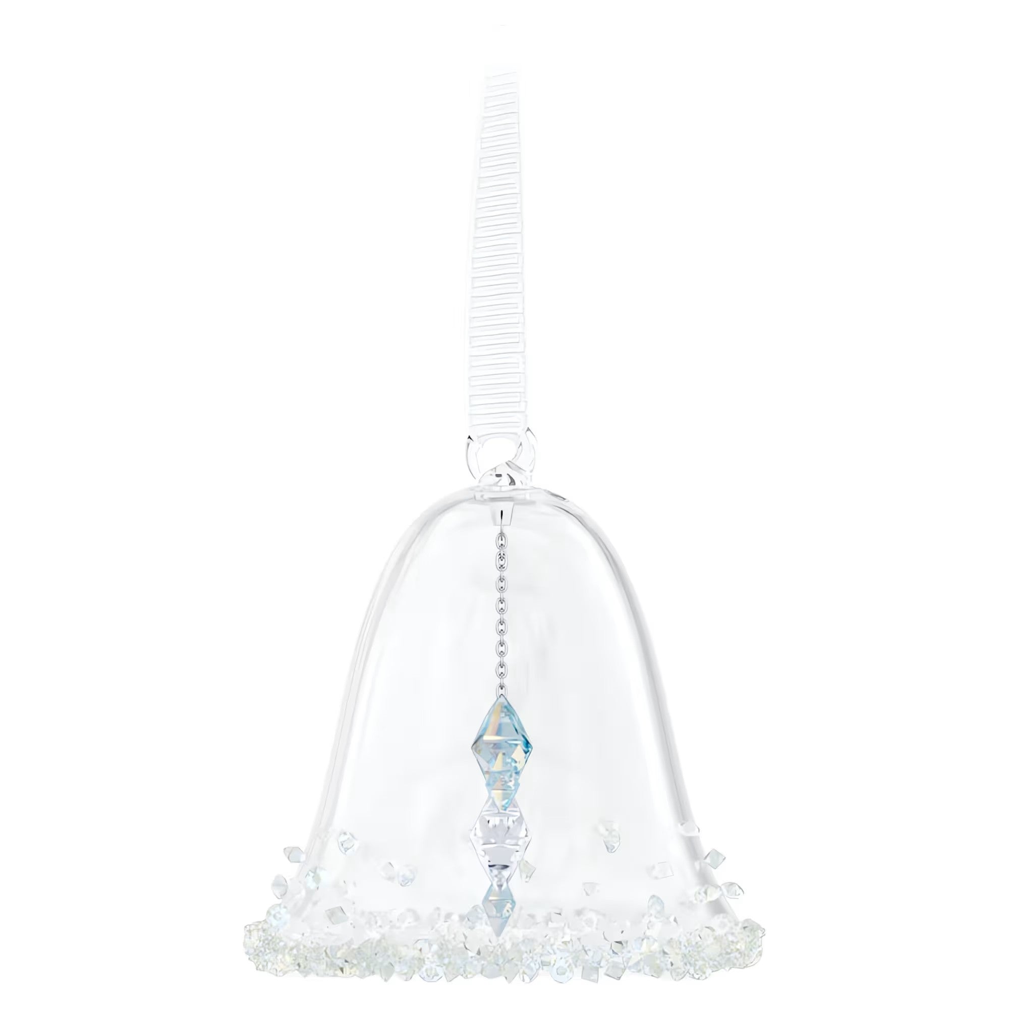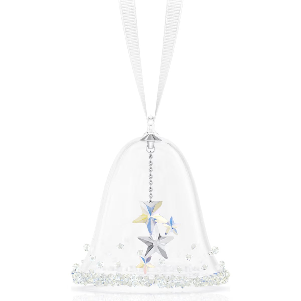 For the first time, Swarovski has crafted a miniature version of its traditional bell ornament. The immaculate glass design is covered with approximately 300 small crystals, while the inside contains a clapper of stars produced with 108 facets and the mesmerizing Aurora Borealis effect. The piece is suspended on a white grosgrain ribbon connected to a silver-tone metal cap, helping to create the perfect display of delicate beauty in your home. Decoration object. Not a toy. Not suitable for children under 15.