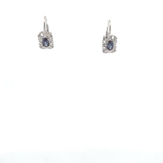 10K White Gold 6x4mm Oval Cut Created Alexandrite and 0.045cttw Diamond Dangle Earrings with Euro Backs
