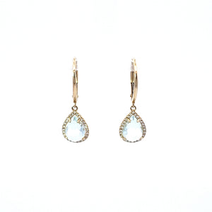 14K Yellow Gold Diamond and Aquamarine Earrings
