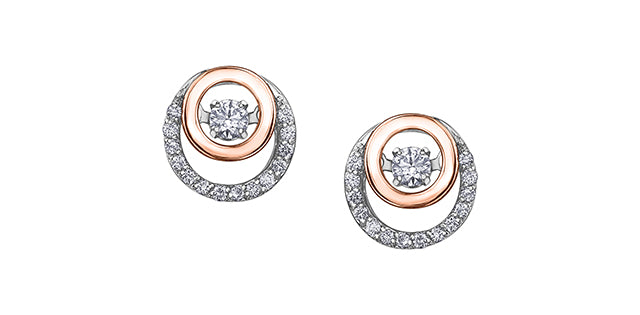10K White & Rose Gold 0.08cttw Round Cut Canadian Diamond Heart Earrings