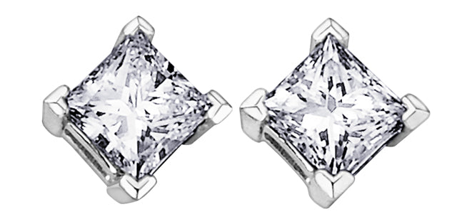 10K White Gold Diamond Stud 0.13cttw Princess Cut Earrings