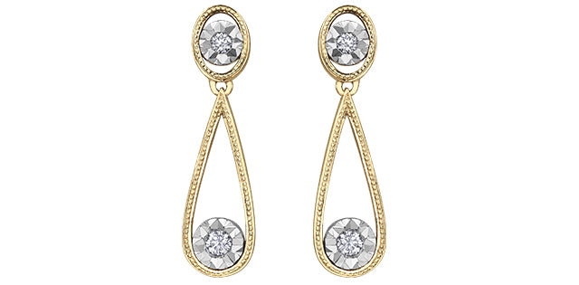 10K Yellow & White Gold 0.10cttw Diamond Dangle Drop Earrings