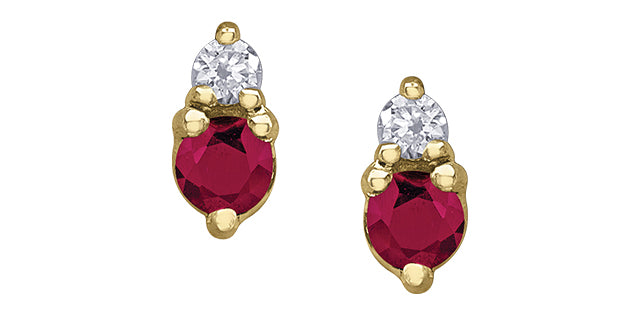 10K Yellow Gold Ruby and Diamond Earrings