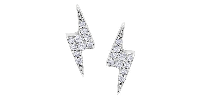 10K White Gold 0.07cttw Round Brilliant Cut Lightning Bolt Diamond Earrings