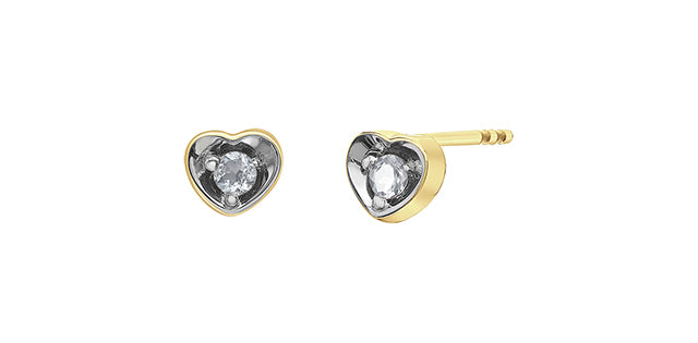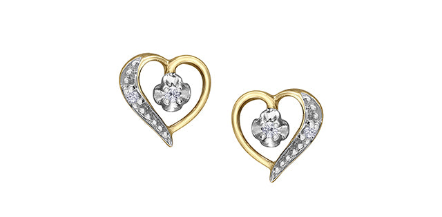 10K Yellow Gold 0.04cttw Diamond Heart Stud Earrings