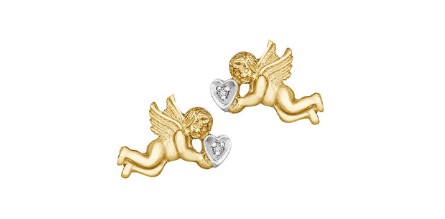 10K Yellow Gold 0.02cttw Diamond Cherub / Angel Stud Earrings
