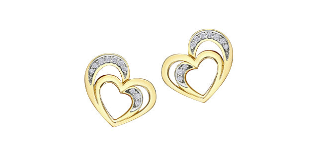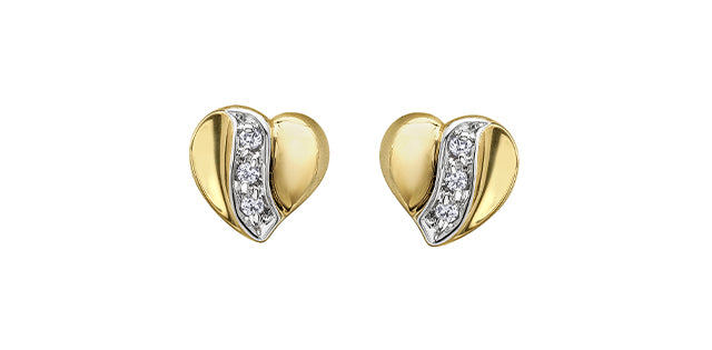 10K Yellow Gold 0.12cttw Diamond Heart Stud Earrings