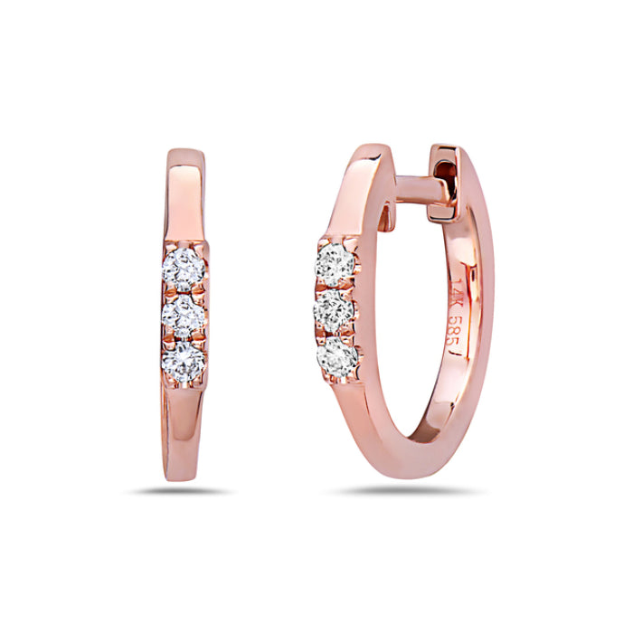 10K Rose Gold Diamond Hoop Huggie Hinged Earrings