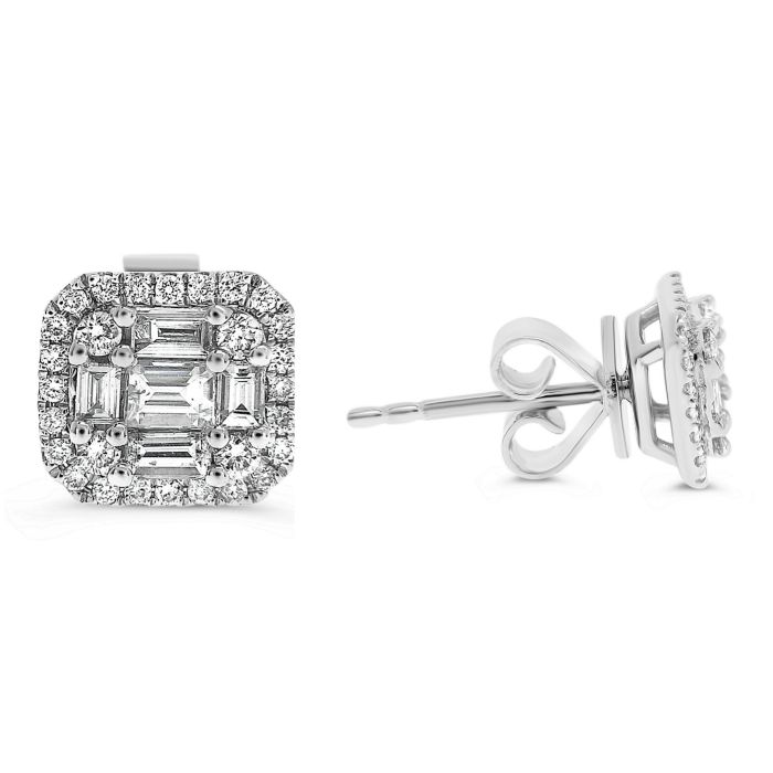 14K White Gold 0.57cttw Diamond Halo Illusion Set Baguette Cut and Round Brilliant Cut Stud Earring $2,400.00 $3,000.00 $2,400.00 $3,000.00
