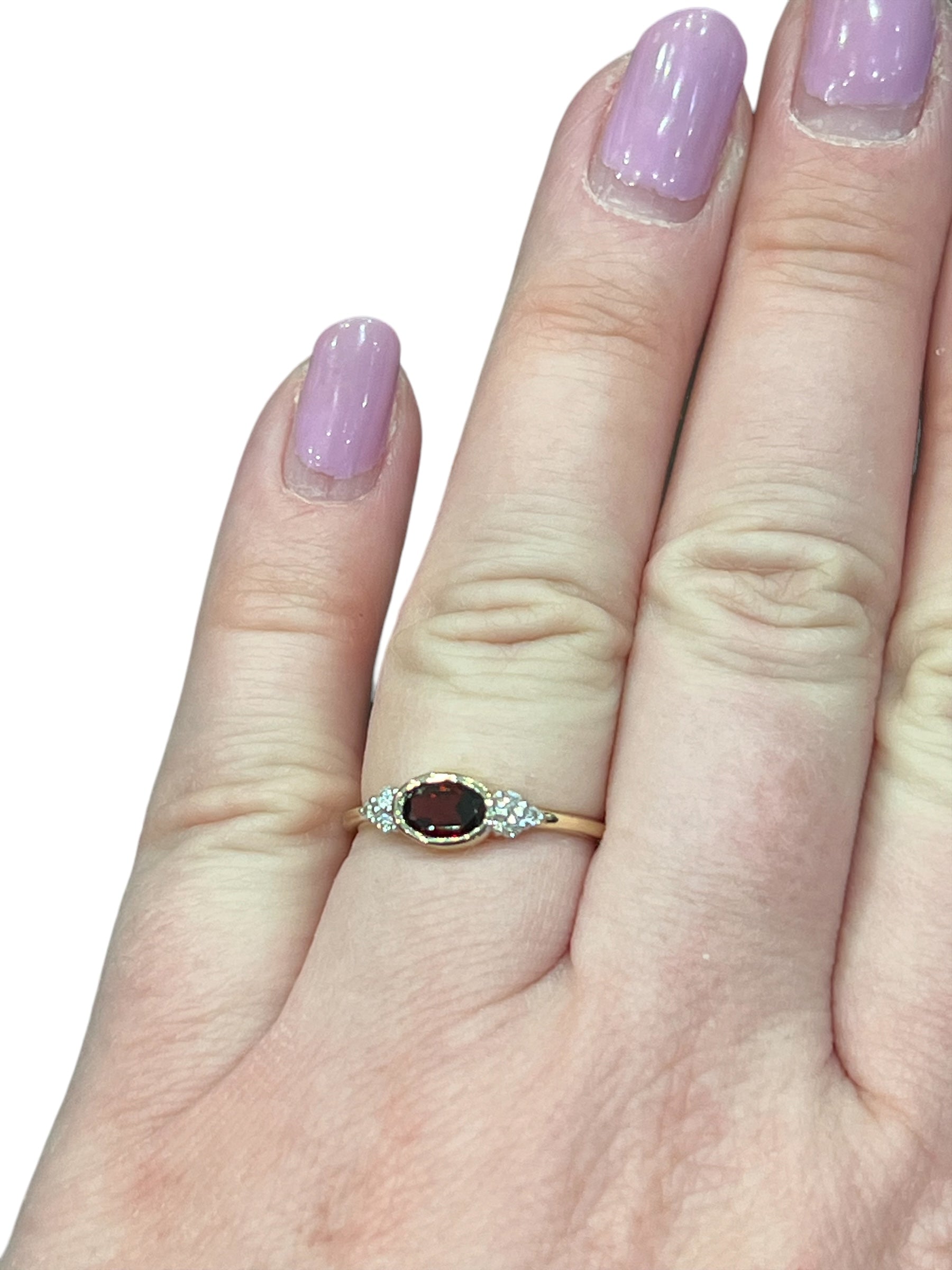 Tracking - 10K Yellow Gold 0.58cttw Genuine Garnet and 0.08cttw Diamond Ring