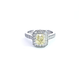 - 14K White Gold 1.64cttw Fancy Yellow Cushion Cut Diamond Halo Engagement Ring