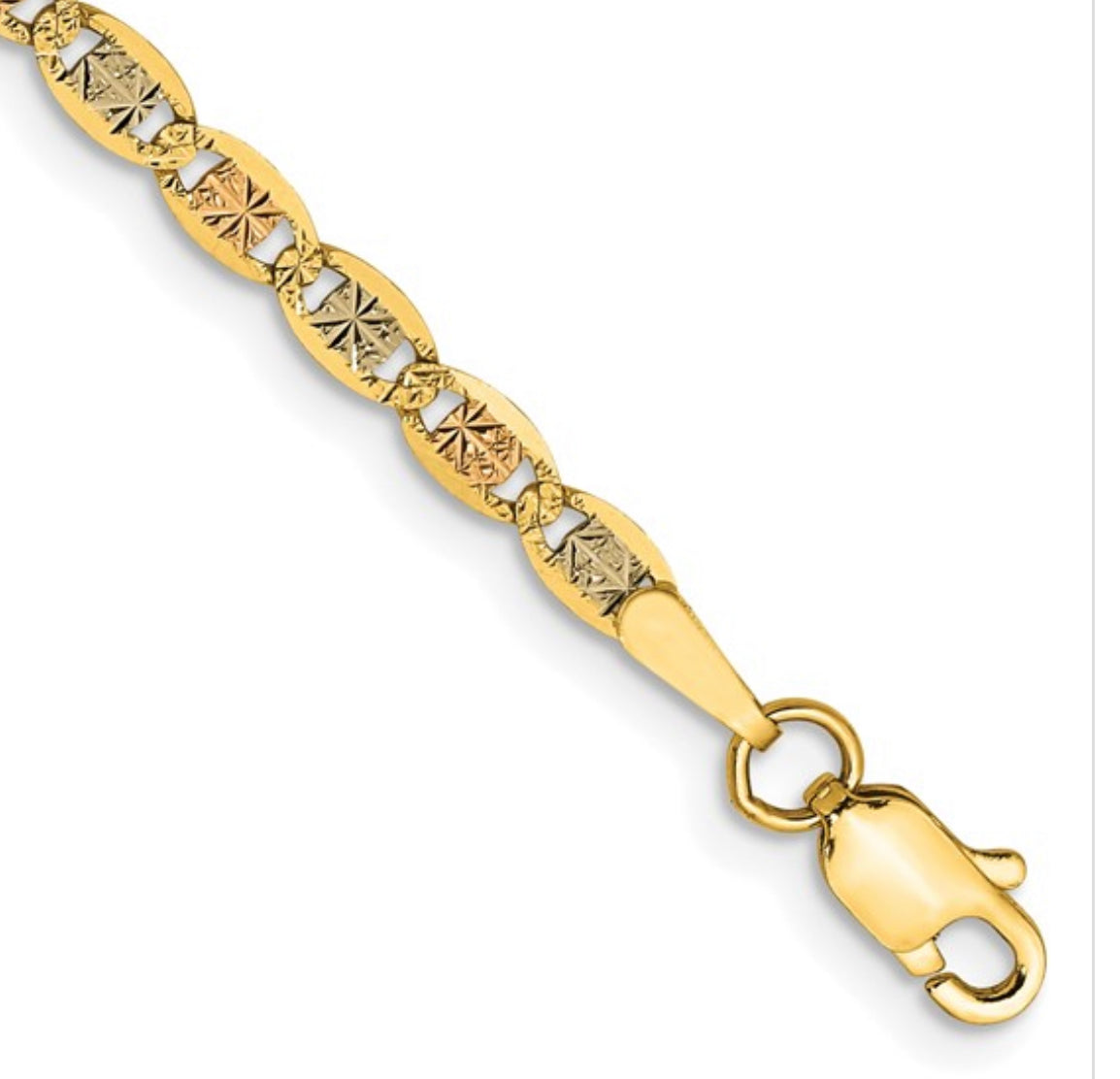 14K 2.75mm Tri-color Pavé Valentino with Lobster Clasp