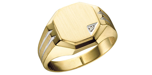 10K Yellow Gold 0.01cttw Diamond Gents Signet Ring, size 10