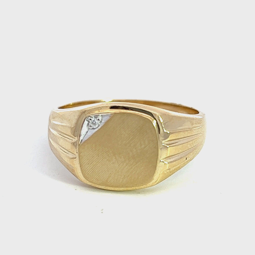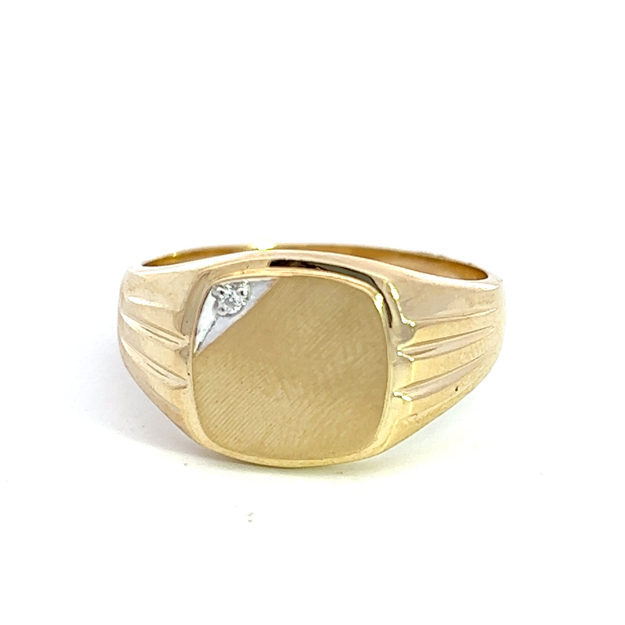 10K Yellow Gold 0.01cttw Diamond Men's Signet Ring, size 9
