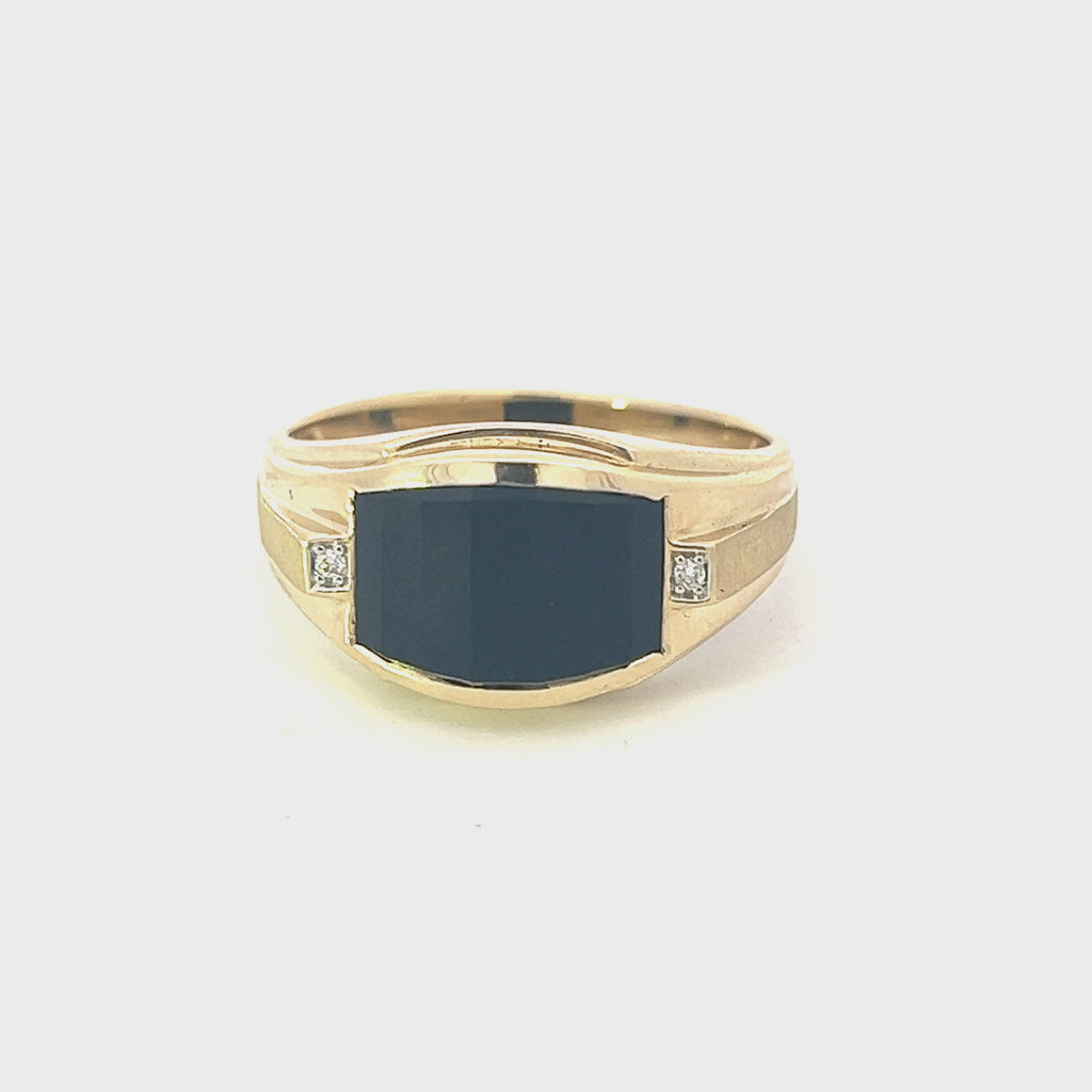 • 10K Yellow Gold Onyx and 0.014cttw Diamond Gents Ring