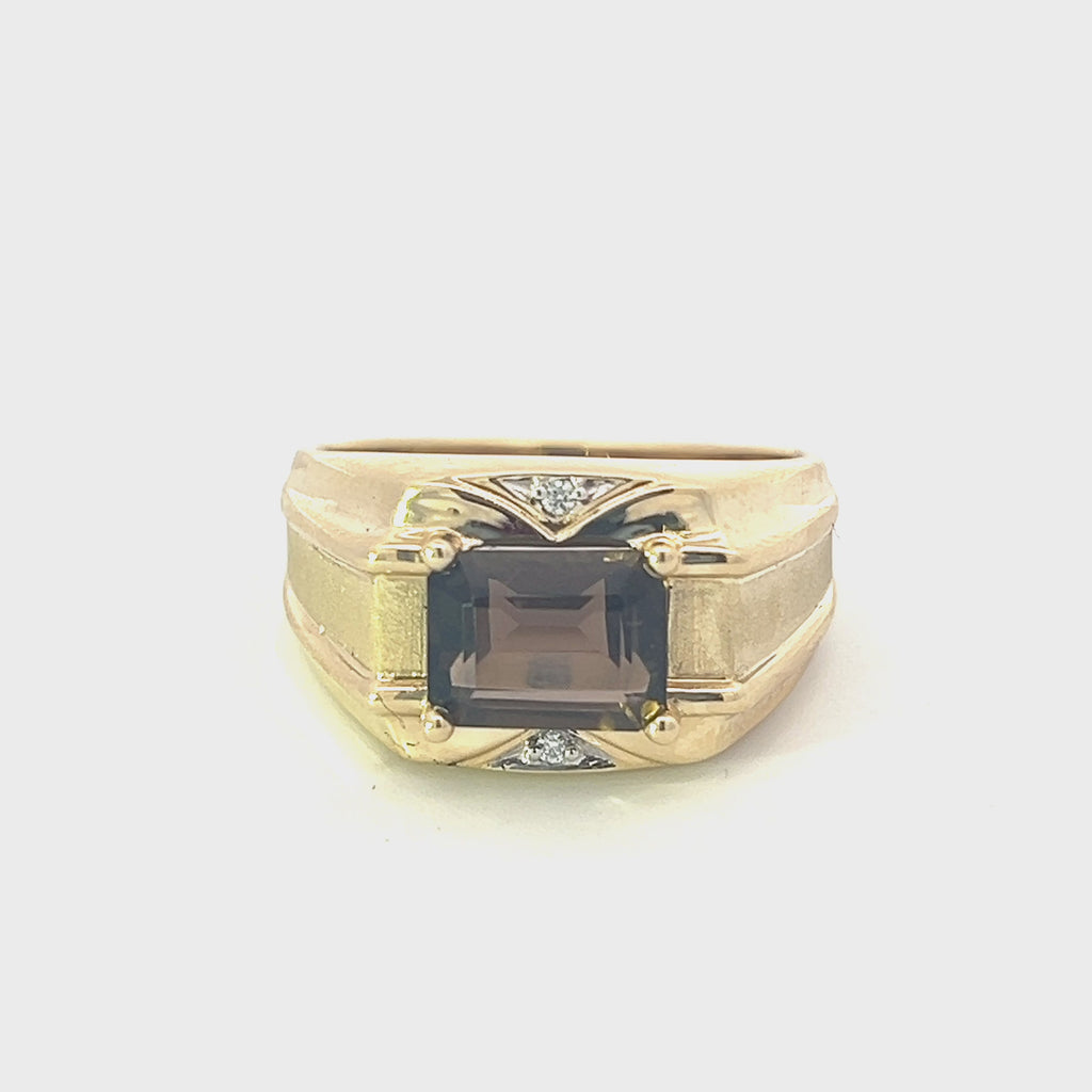 10K Yellow Gold Smokey Quartz and 0.016cttw Diamond Gents Ring, size 10