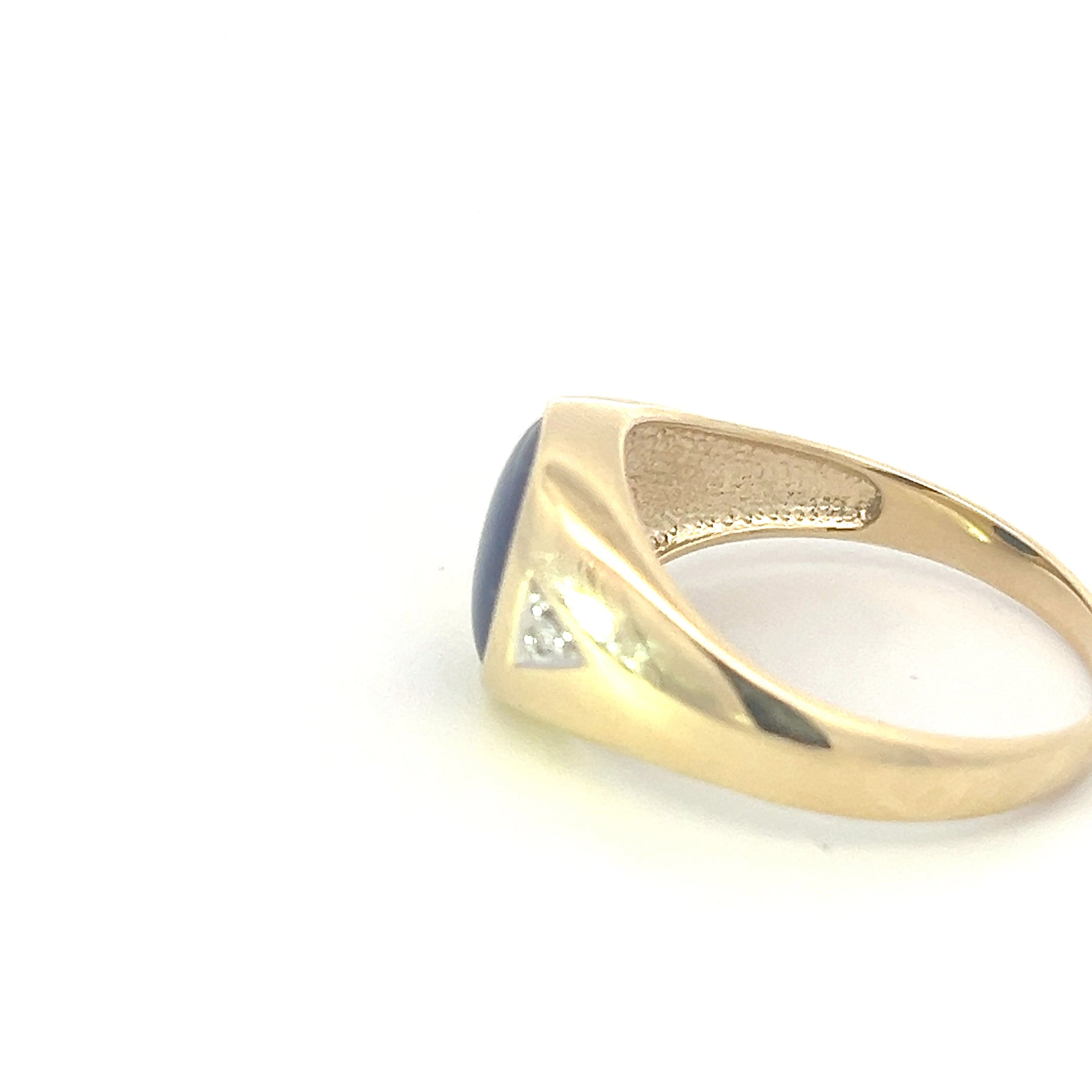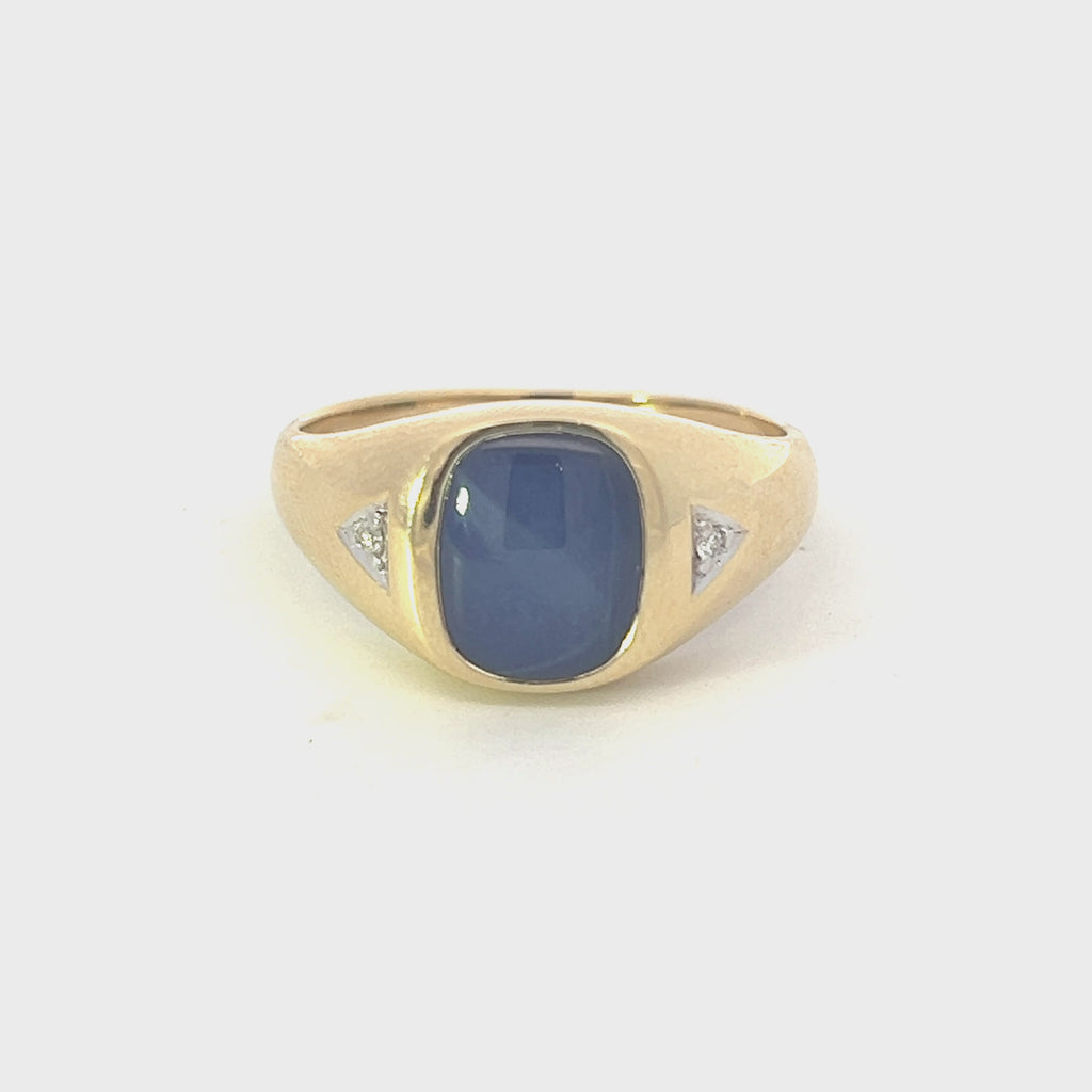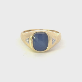• 10K Yellow Gold Synthetic Star Sapphire and Diamond Gents Ring