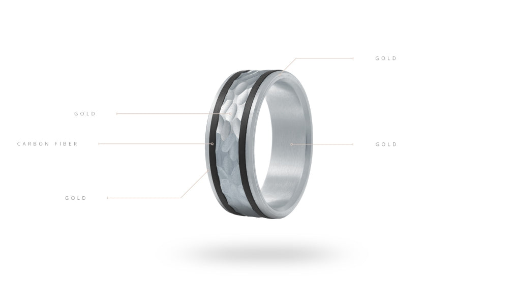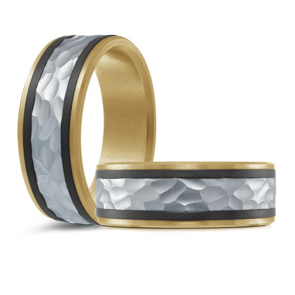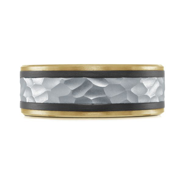 • 14K White & Yellow Gold and Carbon-Fiber Mens Band