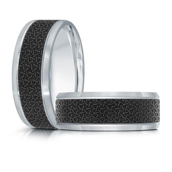 14K White Gold and Carbon-Fiber Mens Band