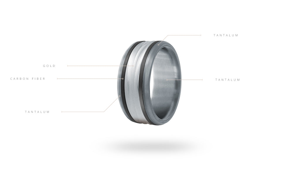 • 14K White Gold, Tantalum and Carbon-Fiber