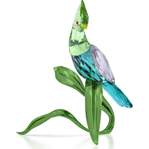 Nature comes alive in this verdant Swarovski creation, showcasing a majestic green turaco displaying its brilliant plumage. The joyful scene has been crafted with 397 precision-cut facets and combines a variety of vivid colors with glossy leaves in green lacquered metal. Place it anywhere in your home to feel your own heart sing. Decoration object. Not a toy. Not suitable for children under 15.