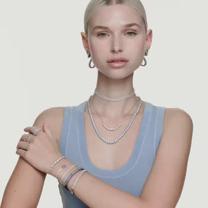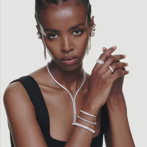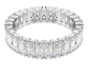 No jewelry collection is complete without a radiant band ring. This silver-tone finish design features a full surround of baguette-cut Swarovski Zirconia, each placed within a refined prong setting. A sensational piece to wear solo or stacked with similarly dazzling rings from the Matrix family.
