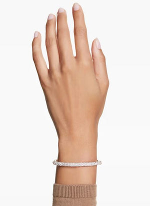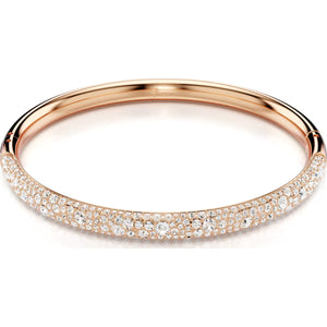 This dazzling Sublima bangle will infuse your style with stardust. The rose gold-tone plated band wraps gracefully around the wrist and features a snow pavé of clear round crystals in different sizes across the top section. A wondrous touch of refinement for your everyday looks.
