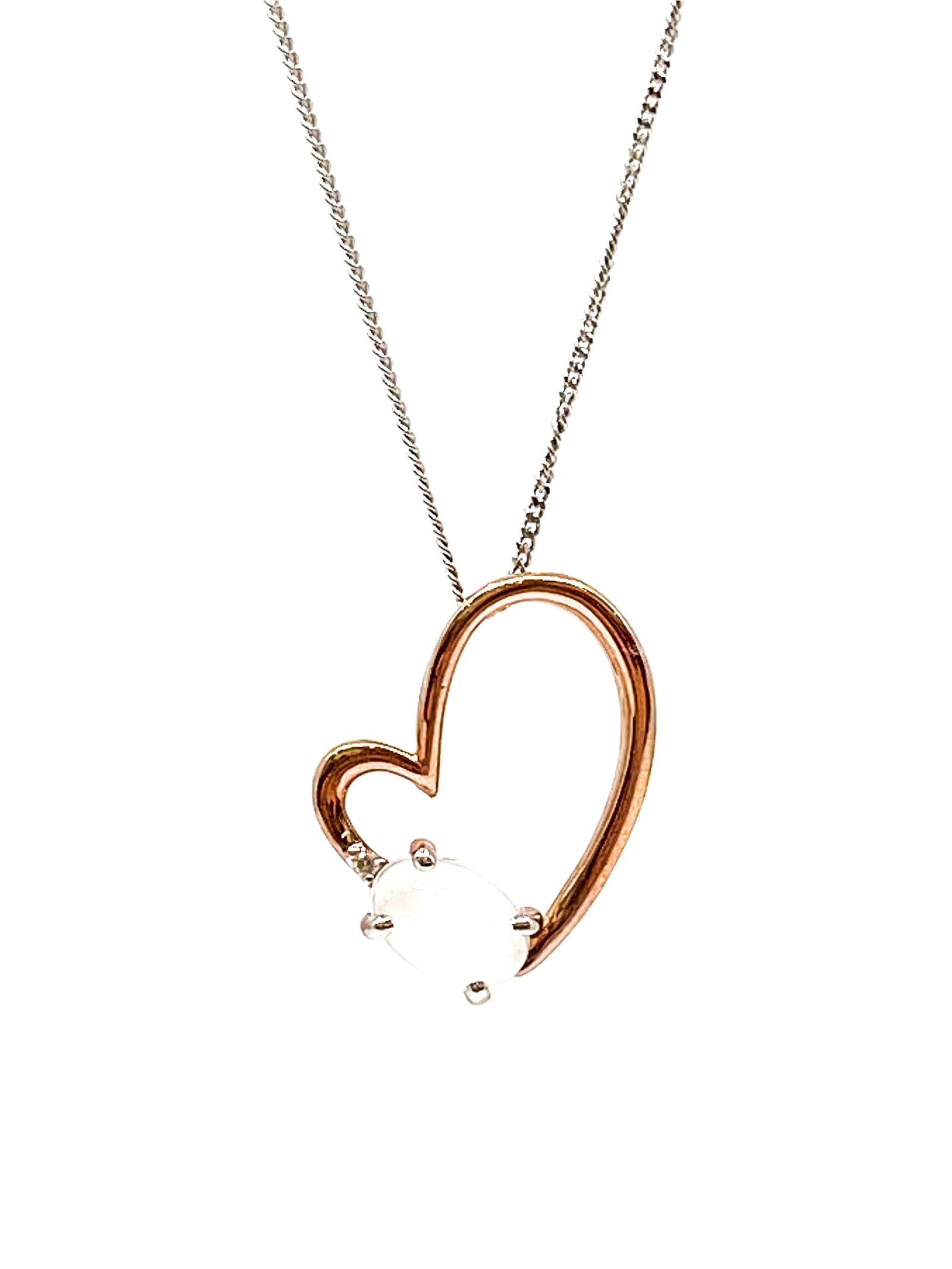 10K Rose & White Gold 0.60cttw Genuine Moonstone and 0.03cttw Diamond Heart Pendant, 18"