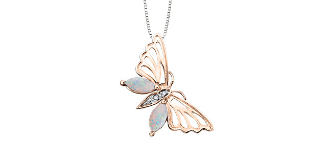 10K Rose and White Gold 0.32cttw Opal and 0.005cttw Diamond Butterfly Necklace - 18 Inches