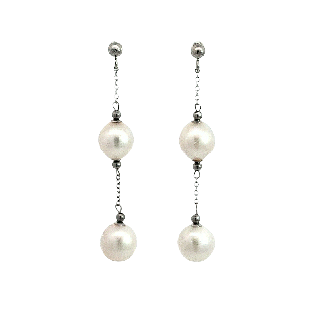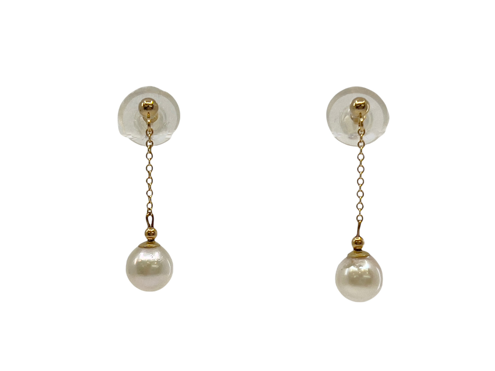 14K White Gold 7.5-8.0mm Cultured Pearl Dangle Earring