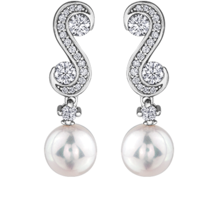 10K White Gold 6.5mm Cultured Pearl and 0.08cttw Canadian Diamond Dangle Earrings $624.00 $780.00 $624.00 $780.00
