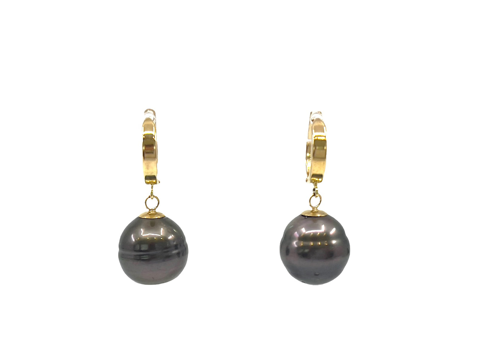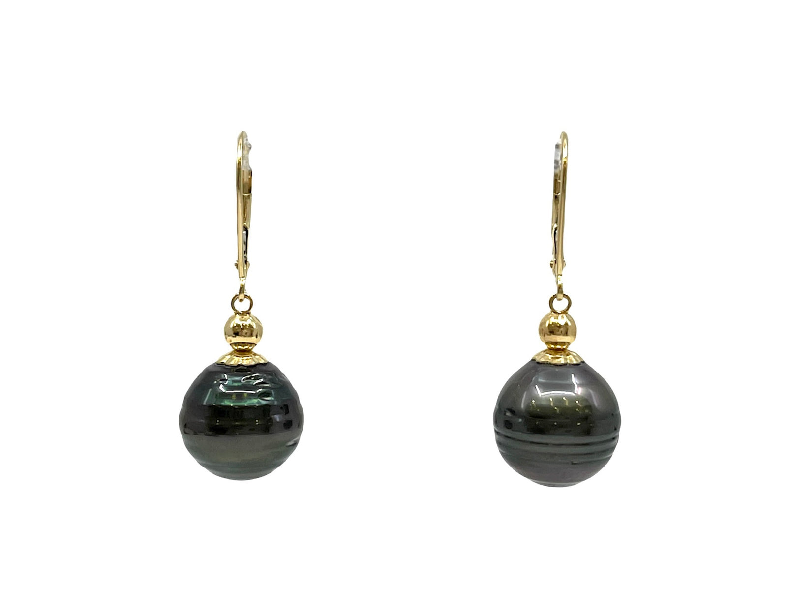 14K Yellow Gold 12mm Tahitian Pearl Earrings with Lever Backs