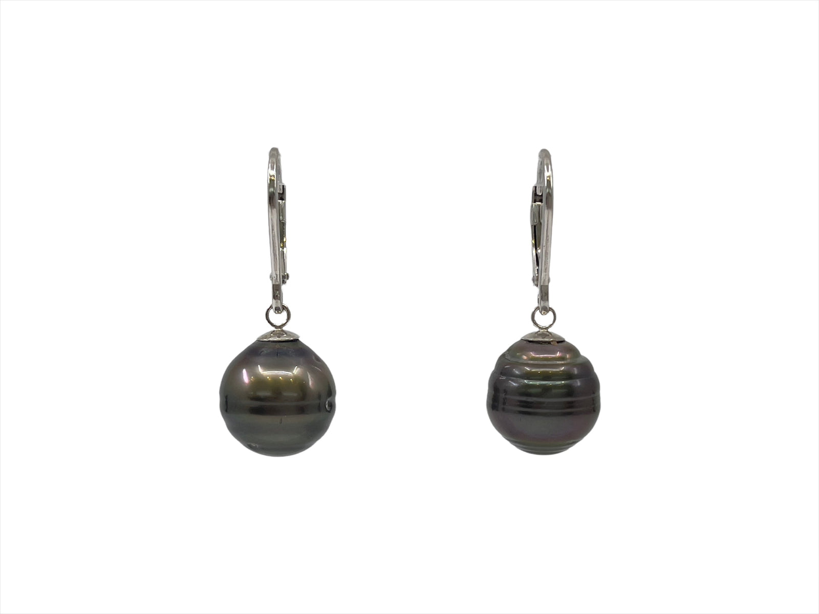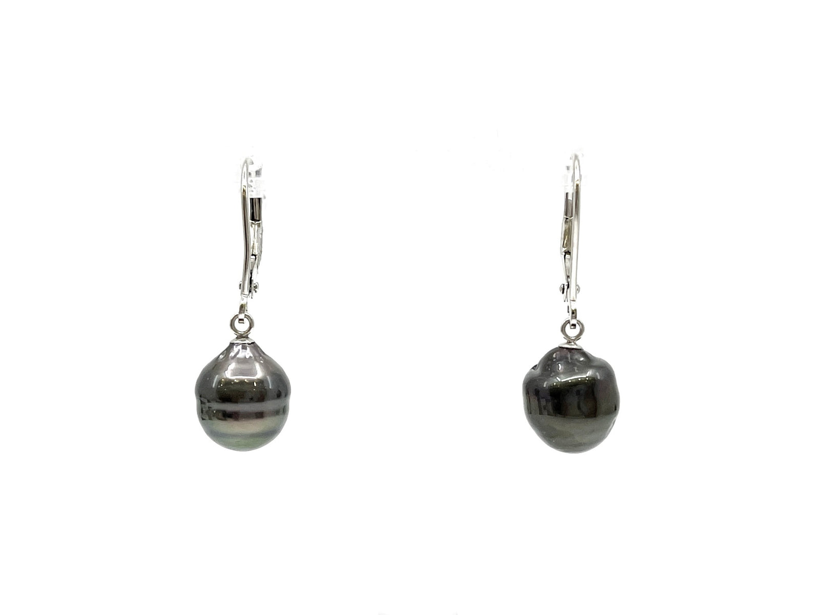 14K White Gold Tahitian Pearl Earrings with Lever Backs