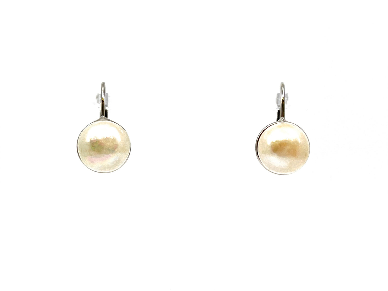 14K White Gold Cultured Pearl Earrings with Lever Backs