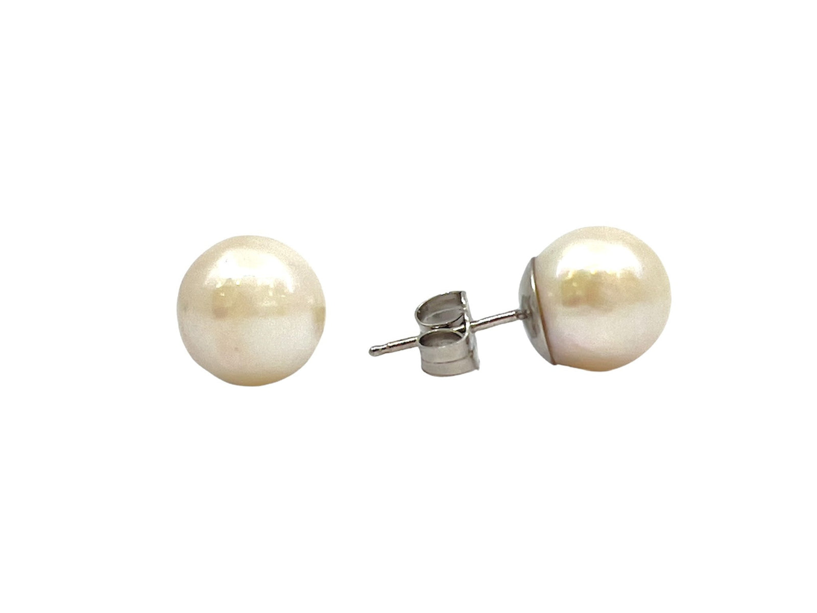 14K White Gold Cultured Pearl Earrings with Butterfly Backs