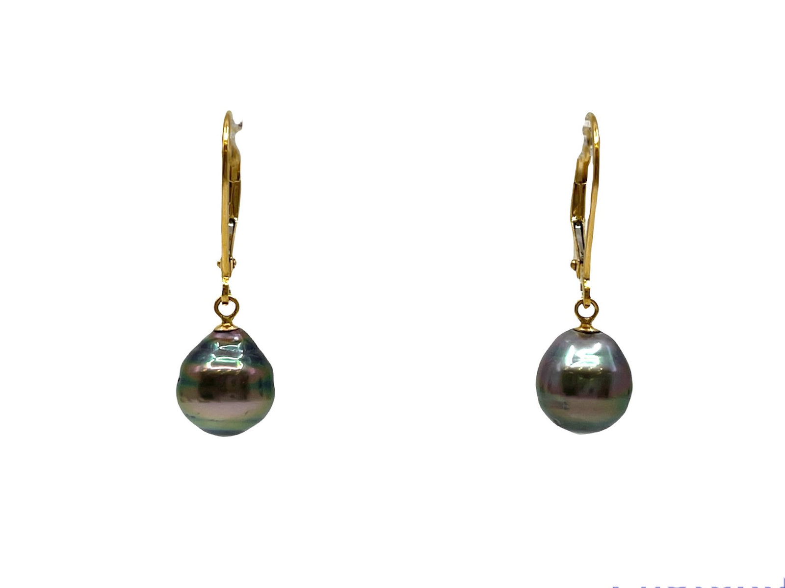 14K Yellow Gold Tahitian Pearl Earrings with Lever Backs