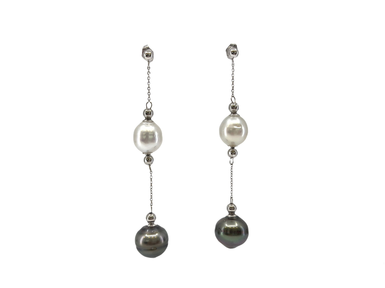 14K White Gold South Sea and Tahitian Pearl Earrings with Butterfly Backs