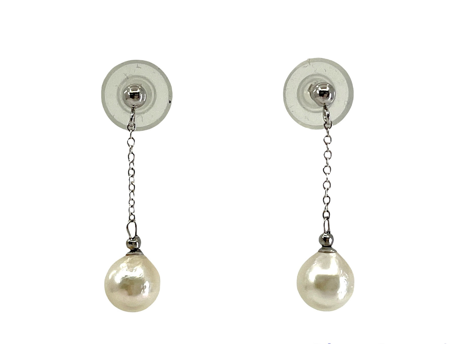 14K White Gold 9mm Cultured Pearl "Threader" Earring